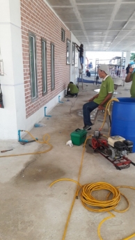 - ฉีดพ่นน้ำยาเคมีภายในและรอบนอก ตามรอยแยก รอยร้าว และจุดที่พบปัญหา หรือเจาะพื้นตามจุดสำคัญ เพื่ออัดน้ำยาเคมีลงดินป้องกันและจำกัดปลวกใต้พื้นอาคาร (ในการบริการครั้งแรก)