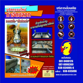 - บริษัท ดรากอน พลัส เอ็กซ์เพรส เซอร์วิส (ประเทศไทย) จำกัดเป็นผู้ให้บริการด้านการควบคุม / กำจัด ปลวกและแมลง สัตว์พาหะนำเชื้ออื่นๆ ในเขตพื้http://www.dragonplusexpress.comTel. 0-3803-4095-6, 08-1940-0126, 08-7000-6369