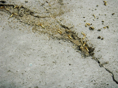 หาที่มาของปลวกอยู่พักใหญ่ก็เจอ! ปลวกขึ้นมาตามรอยแตกของพื้น บ้านสร้างมา 20 ปีรอยแตกก็แตกมานานแล้ว ไม่ยักกะมีปลวกขึ้นมา ปีนี้เหมือนจะเฮงปลวกมาเยี่ยมเยียนซะงั้น ขึ้นไปถึงชั้น 2 ผ่านทางฝากันห้องไปอยู่ใต้พื้นชั้น 2 เรียบร้อยโรงเรียนปลวก แต่กินอะไรไม่ได้เพราะพื้นชั้น 2 ไม้เนื้อแข็งทั้งน้าาาาาน กิ๊วๆ ที่จะกินได้ก็แต่ไม้เนื้ออ่อนที่ตียึดฝ้าแค่นั้นแหละ